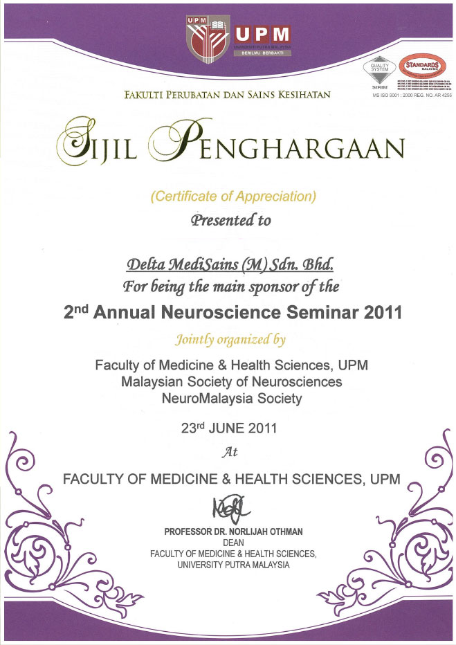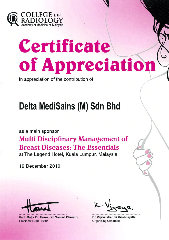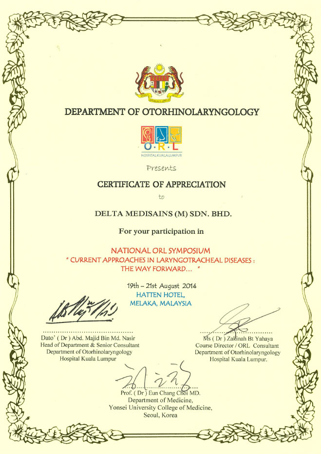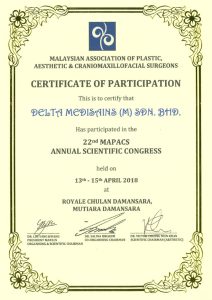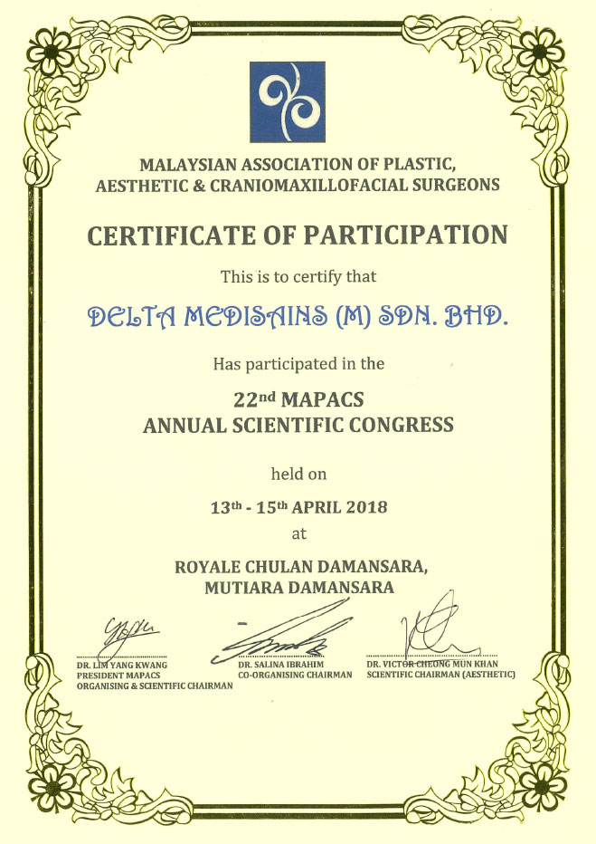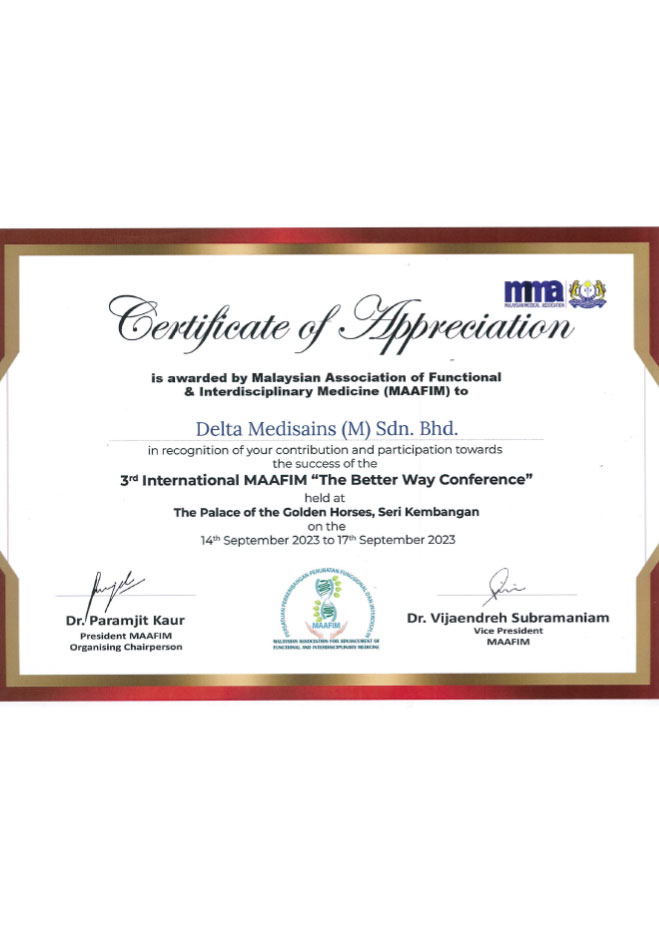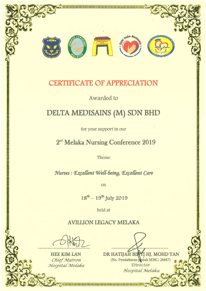 Delta Medisains (M) Sdn Bhd is a registered company accredited by the Ministry of Finance of Malaysia (KKM/MOF) and the Medical Device Authority (MDA) under the Ministry of Health, Malaysia. Holding the Medical Device Establishment License (MedCast) from MDA, under the Malaysia Ministry of Health, underscores our commitment to regulatory compliance. Every product we offer is meticulously registered with MDA, ensuring adherence to the highest standards. Additionally, our company proudly maintains certification in compliance with the Goods Distribution Practice for Medical Devices (GDPMD), accredited by BSI, reflecting our unwavering dedication to quality and excellence.